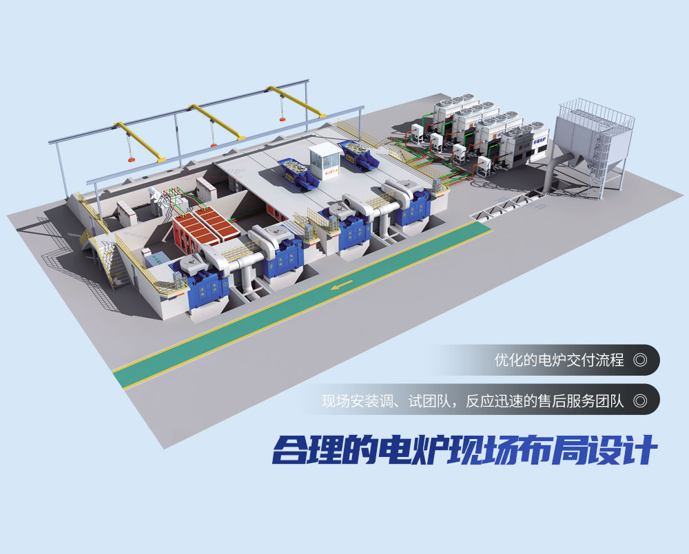電源柜元器件布置規(guī)范合理,維修人員能很輕易地接觸到所有維修點;開放式的電爐結構設計,易于設備維護。